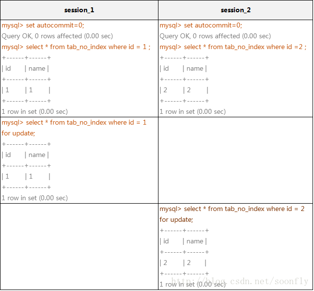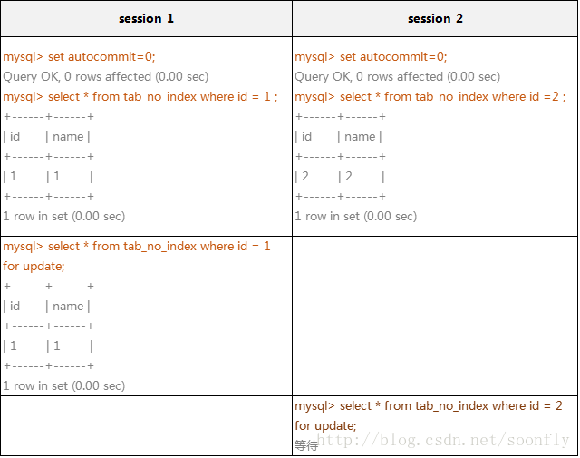 在实际应用中,要特别注意InnoDB行锁的这一特性,不然的话,可能导致大量的锁冲突,从而影响并发性能。下面通过一些实际例子来加以说明。