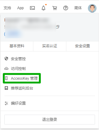 以阿里云为例,登录后台找到账号的秘钥(建议创建子账号来专门管理此功能):
